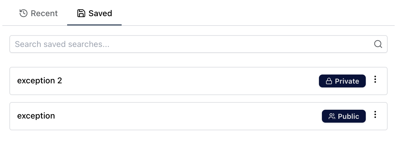 • To delete a saved search, click the three-dot menu next to it and select Delete.
